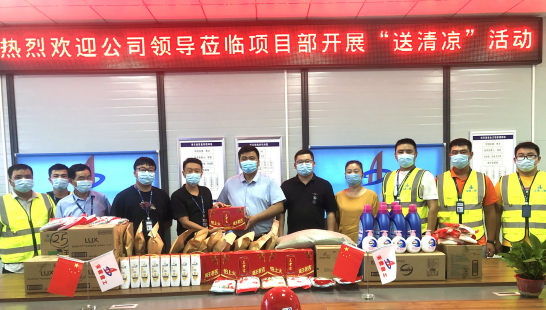 為做好高溫季節(jié)防暑降溫工作,切實維護職工安全健康權益,8月13日上午,公司副總經理費勤波,工會副主席、女工主任王俊一行赴二分公司肥東縣人民醫(yī)院公共衛(wèi)生綜合樓項目開展2021年夏日“送清涼”活動,對項目工作進行指導,為堅守在一線工作崗位的職工送去防暑降溫慰問品,給項目部帶來了一縷清涼。